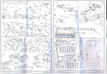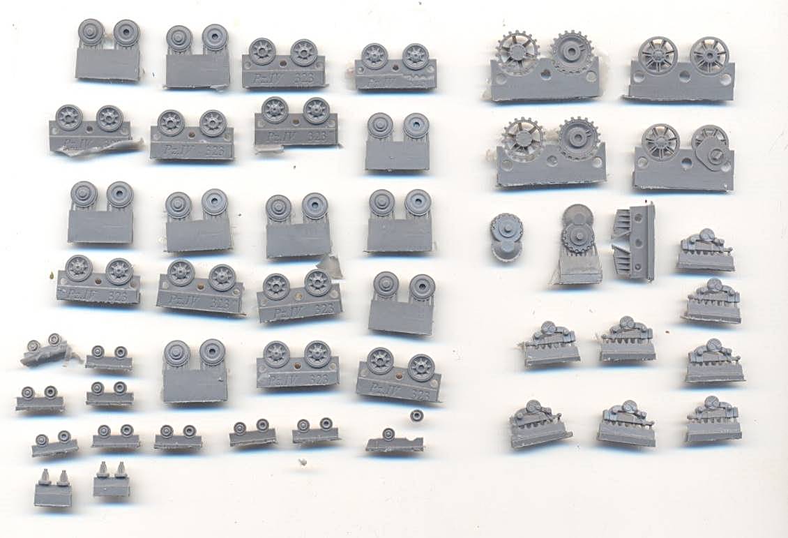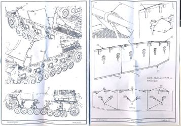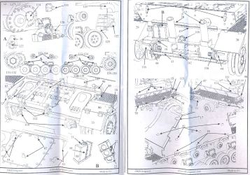 Only after I started construction did I notice that the "pipes" on which the Thoma Schürzen are suspended (parts 87) were missing from my specimen. The instructions are elaborate, but at first sight don’t follow any logic. I didn’t find any instructions to glue the upper and lower hull together, for instance; the drawings are mostly meant to show where which part goes on the assembled kit. However, the parts need to be identified by number first, based on drawings on the instructions (they are not repeated on sprues as on classical, injection molded kits). Knowing that the parts are plentiful (I’ve been told more than 450, and I don’t dare to try and get a more precise count), this will be somewhat of a challenge unless you are very familiar with German armor and can thus identify parts on sight.