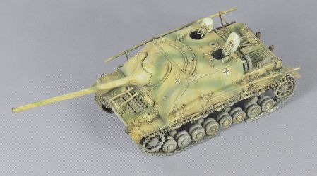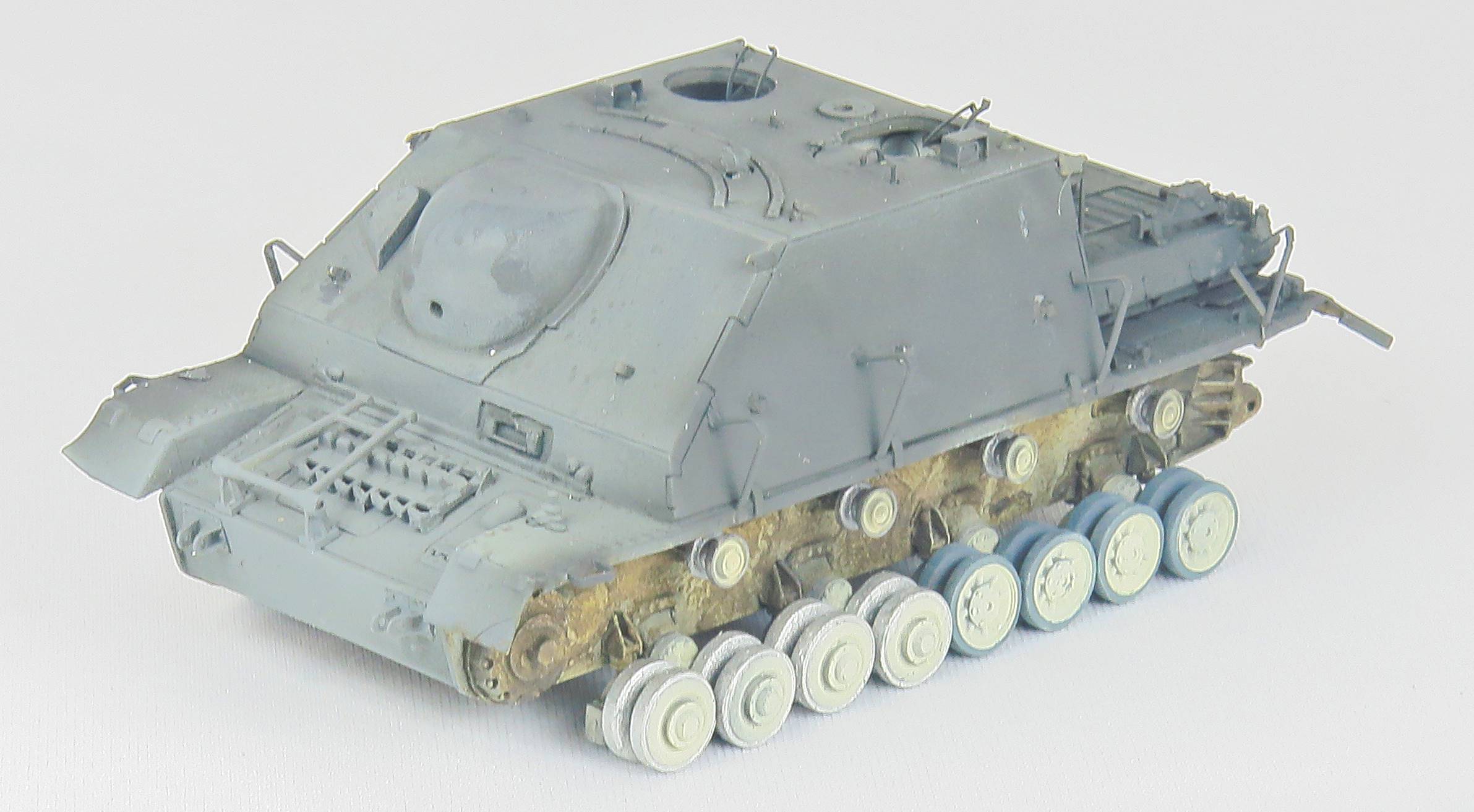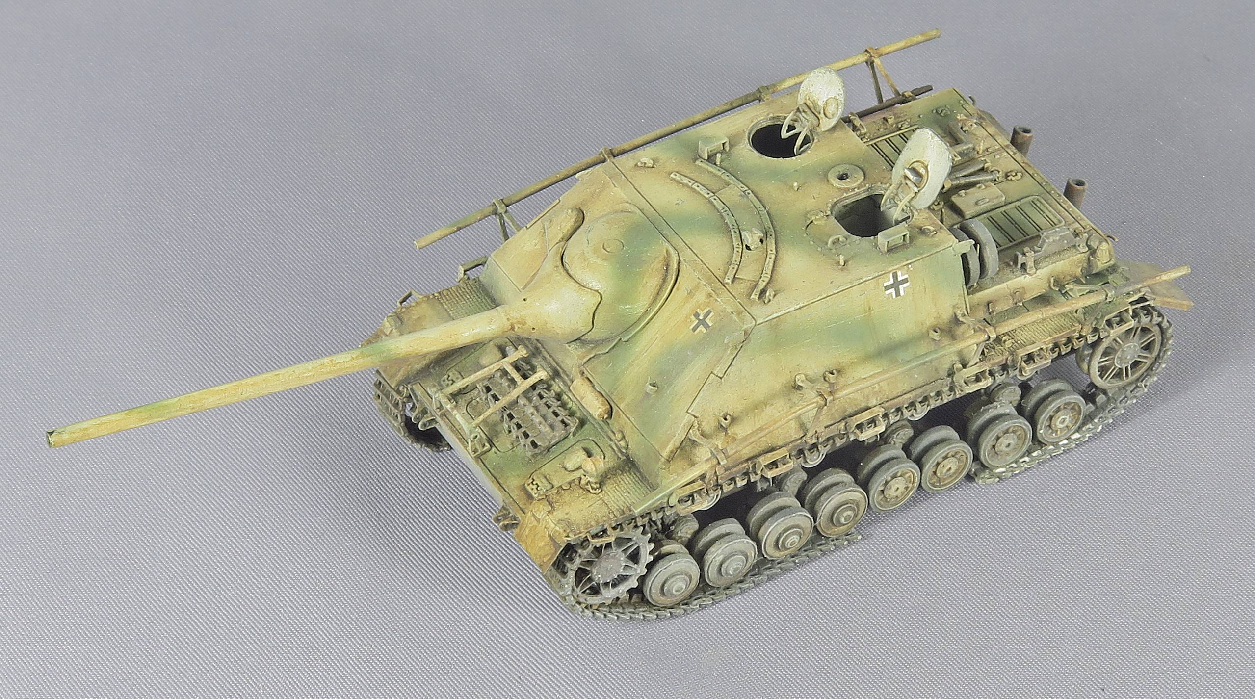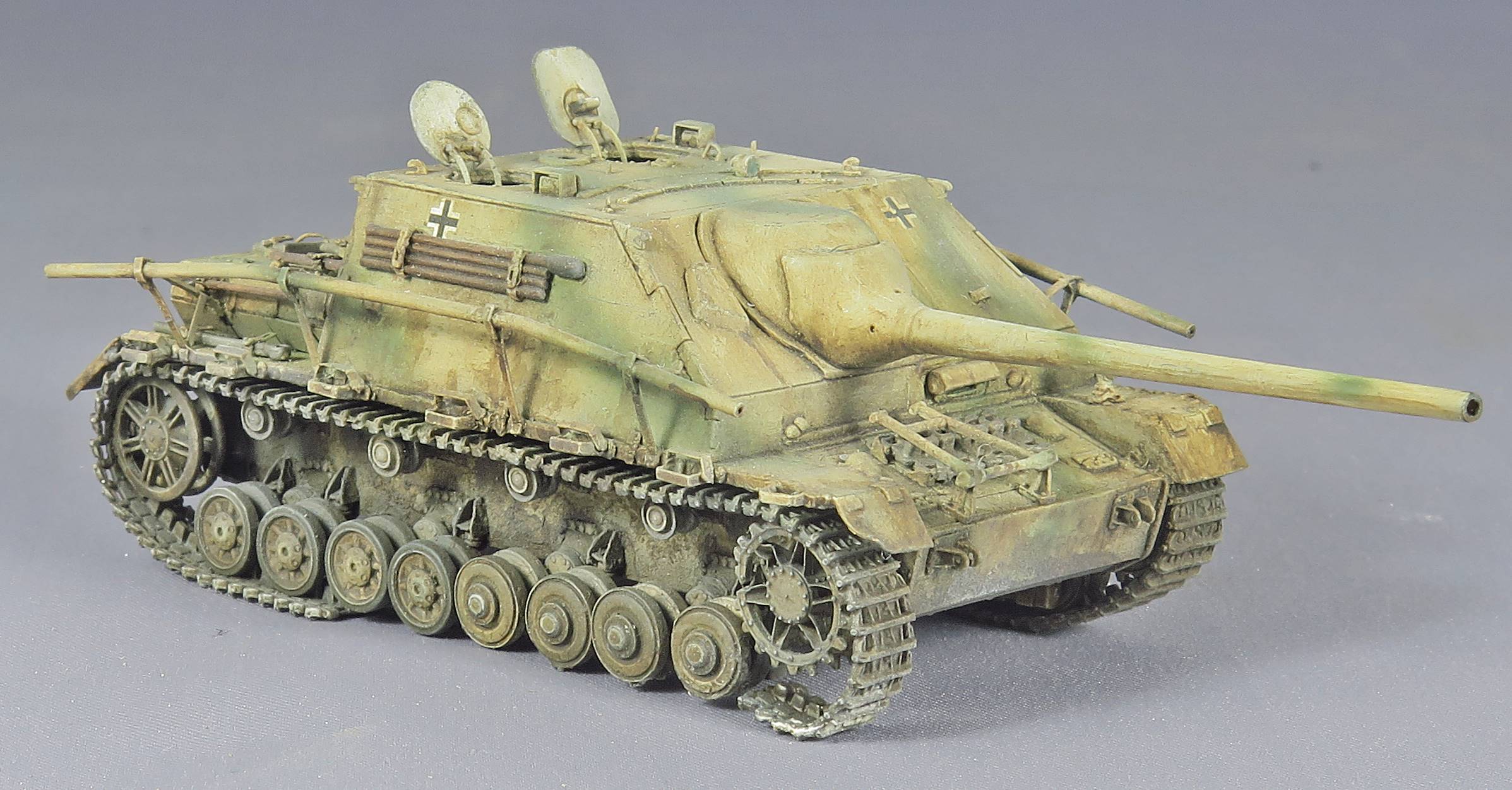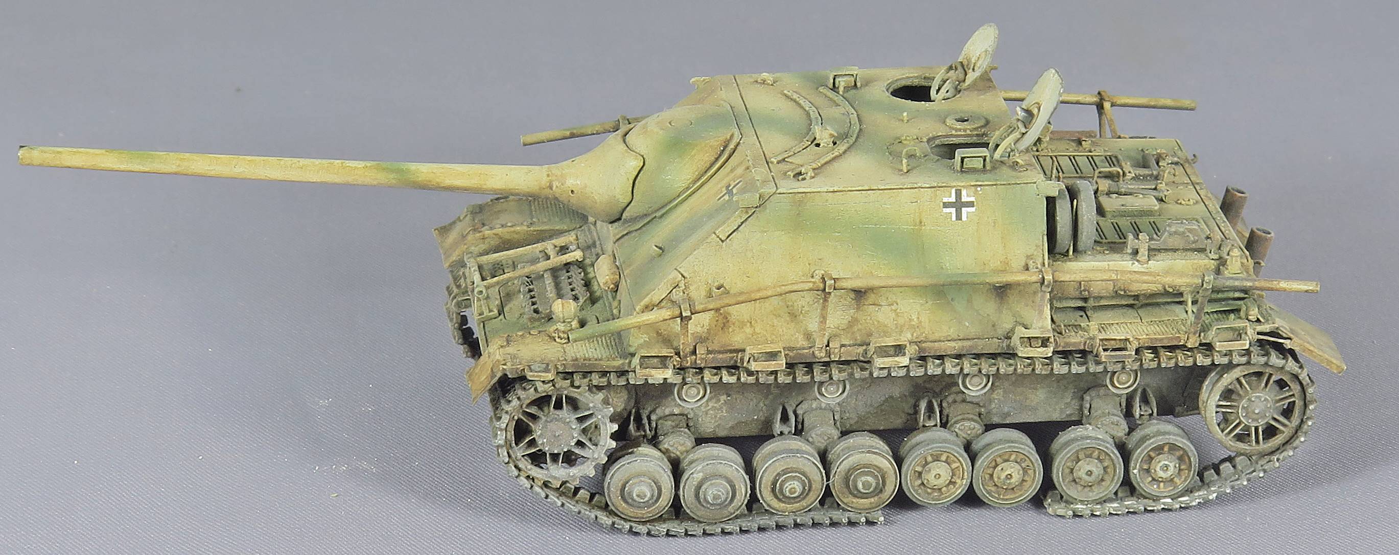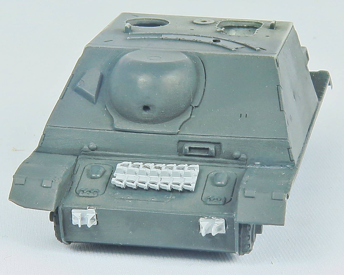 effect. It's fiddly, to say the least. The kit doesn't provide an antenna, or doesn't mention that one needs to be added to the antenna mount on the left rear side of the hull. As the kit was going to represent a vehicle captured by Soviet troops, some battle damage was simulated. Decals came from the spares box and the paint scheme is not based on any particular vehicle.