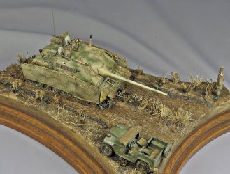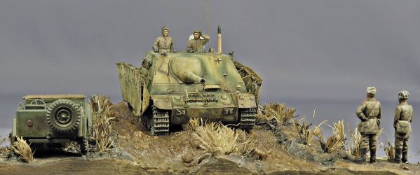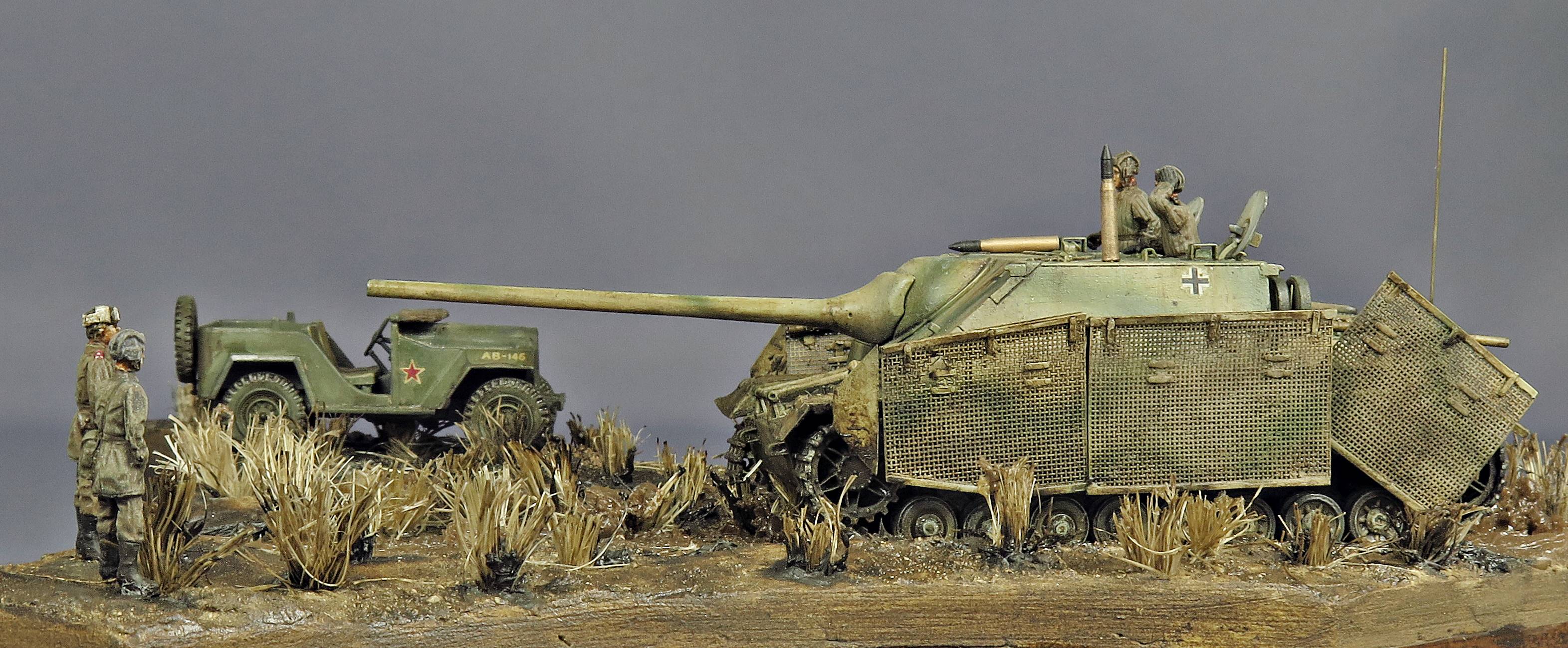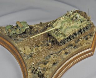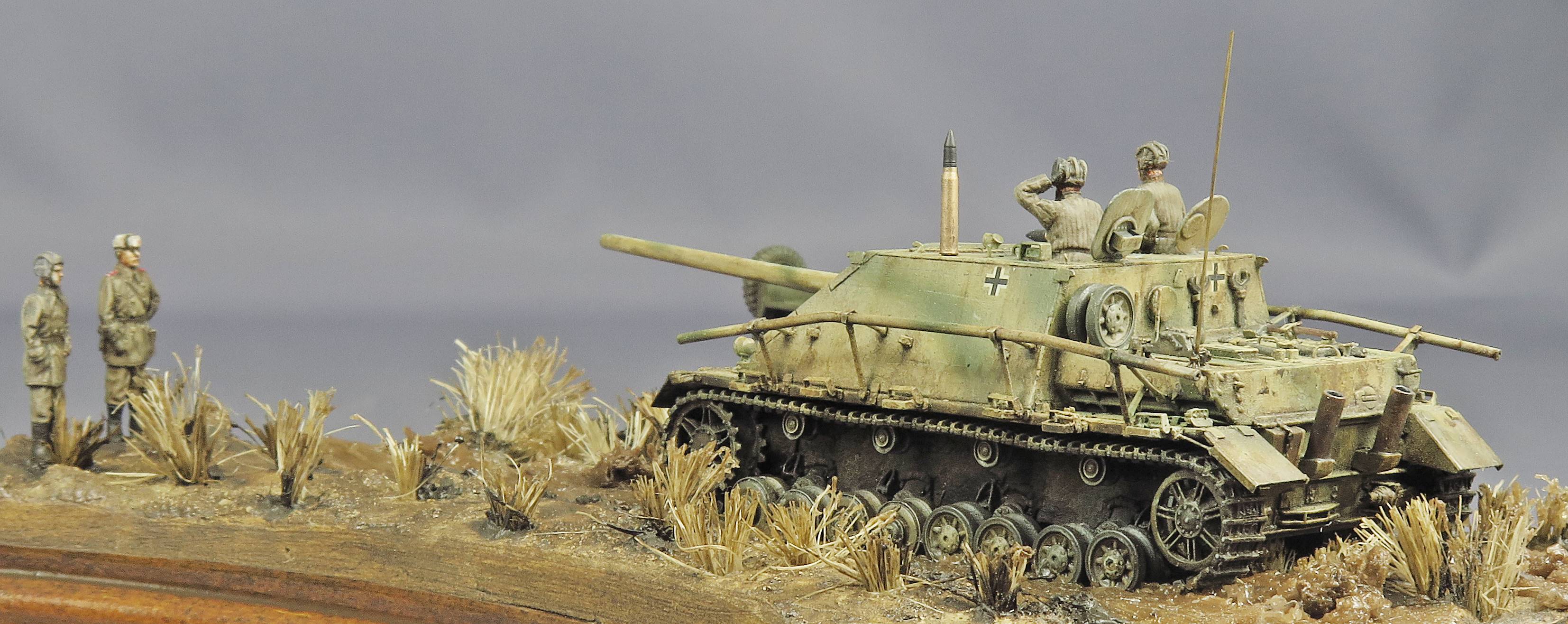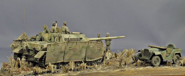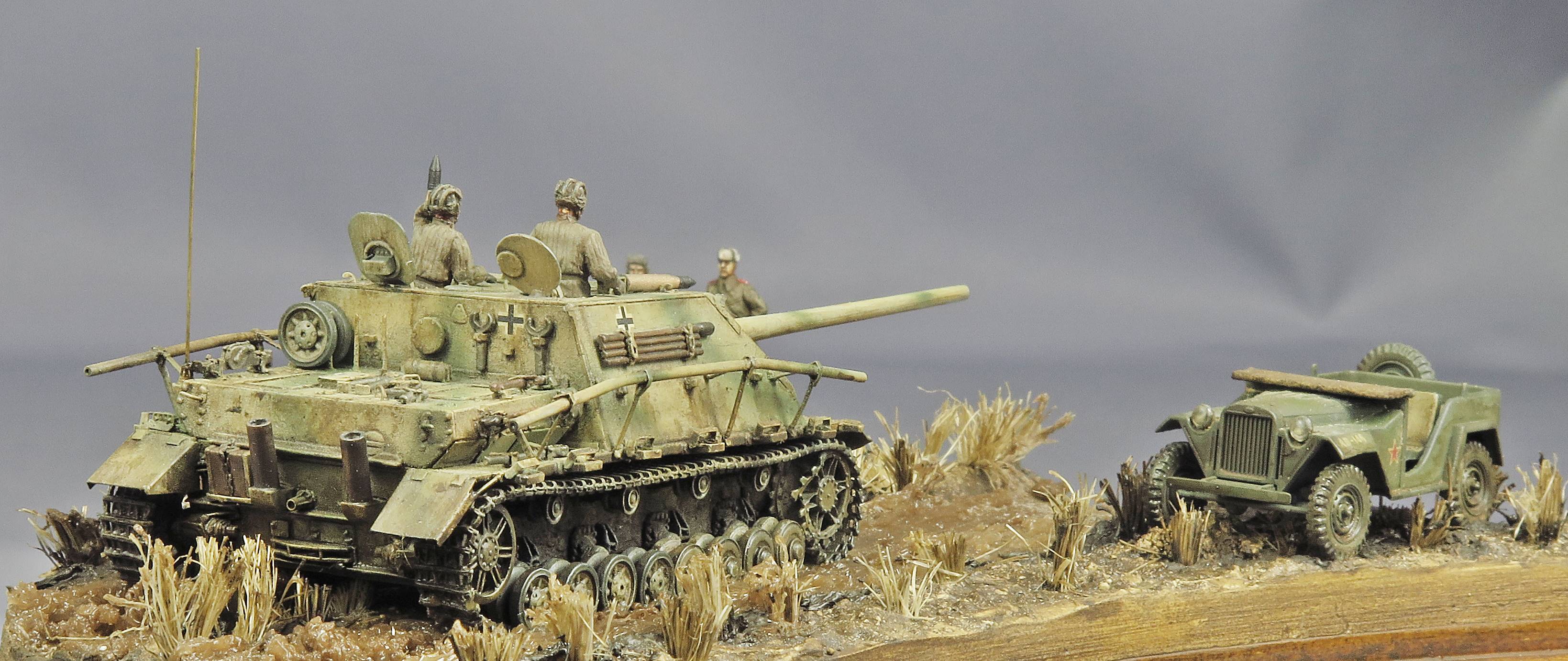 Diorama For the diorama I also used Milicast figure set F22 and an S-Model GAZ-67B. The diorama was initially finished without the Schürzen to allow access to the groundwork.