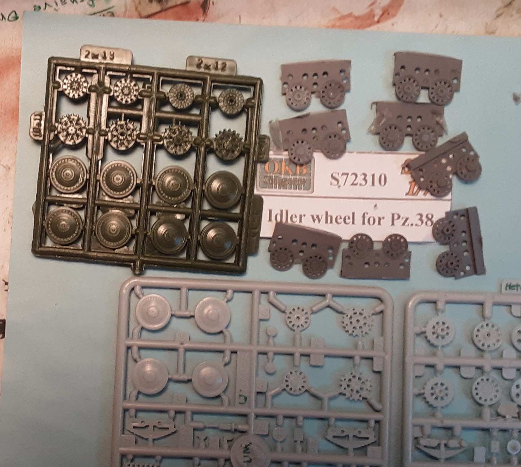 of the Pz 38. At left is a sprue of wheels from a short-run, injection