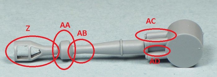 Z. The kit muzzle brake is circular in cross section, but should be more oval. The end face is flat but should be convex. The rear section is too narrow.
