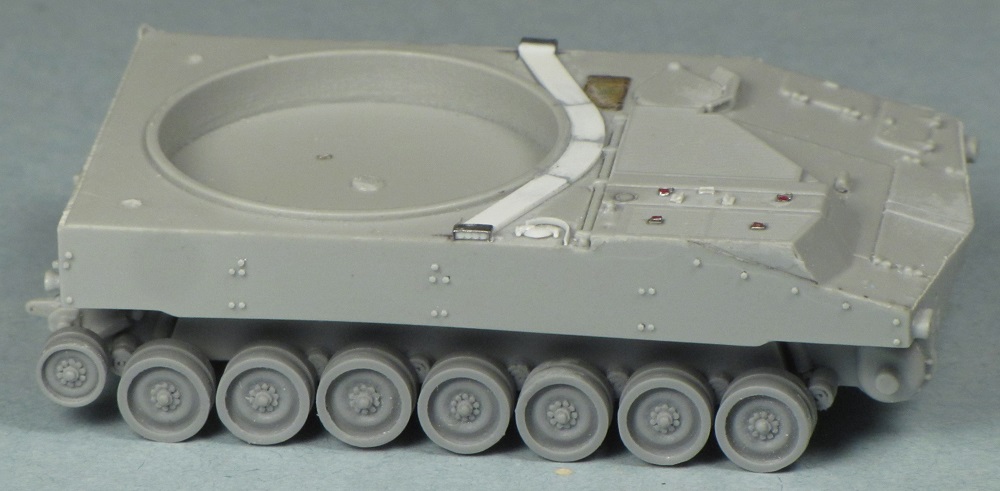I used the same process on the idlers to reduce the gap. I had to drill out the holes in the back of the idlers to fit the axles moulded to the hull. Similarly, I