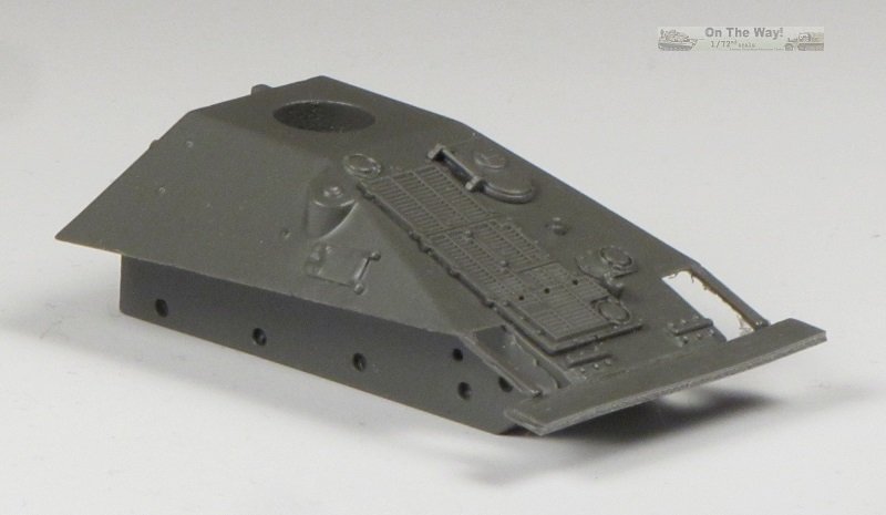 hull details include a group of four spare track crossbars, a stowed 30-cal tripod, the exhaust system (with hollowed-out tip) and the sprocket mounts. Strangely,