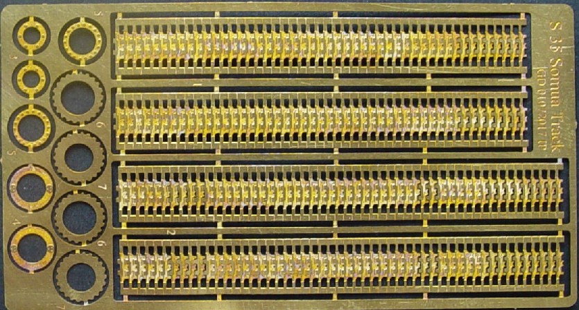 A set of Photo etched track to replace the Heller kit tracks, although I have personally not seen the Heller tracks, if they are anything like the AMX-30 tracks, then they need replacing. Nicely detailed with new sprockets