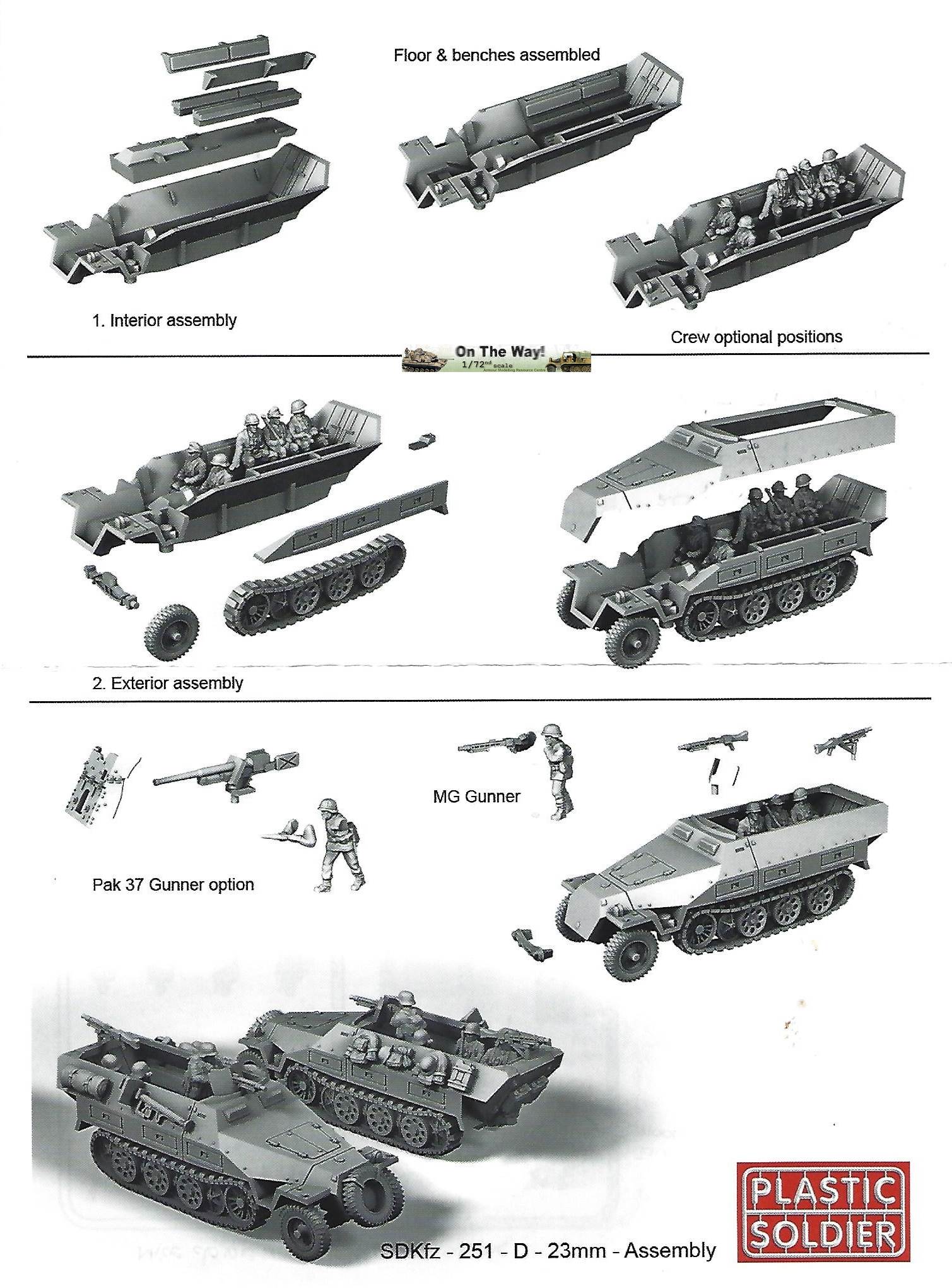 References and helpful links SdKfz 251 In Action, Charles Kliment & Don Greer, Squadron Signal Publications Armor series No. 21 (1981). THE Sd.Kfz 251 HALF-TRACK by Bruce Culver, Osprey Vanguard 32 (1983) [Replaced by the newer book Sd.Kfz 251 Half-Track 1939–45 (New Vanguard Book 25)] Henk of Holland modeling website, section on Plastic Soldier Company model kits.
