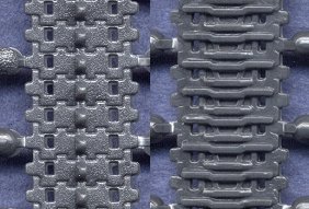 ![]() This is an easy review. This set, which was only recently released, is simply a single sprue of styrene plastic link & length tracks for the KV, IS and ISU series of tanks. These are the same tracks that are included in all the PST kits, and can be used as replacement tracks for the Roden IS-3, the ESCI KV-1, and other resin kits and conversions. I consider these tracks to be pretty decent, though not as fine as the newest tracks by Revell, UM, etc. The detail on the inner surfaces in particular is very nice, but the individual link detail on the outer surfaces is overly simplified. However, the track that is most visible on the completed models is the portion wrapping around the idler and sprocket wheels, and these are constructed with individual links, which look much better than the single-piece lengths pictured below. So all in all, these tracks do look very good on a completed model. As an aside, I think it is a great idea for a manufacturer to release small upgrade sets such as this one. If they have an item in their kits that is superior to others in the marketplace, it would behoove them to do as PST has done here, and make those items available separately. I can easily think of a dozen examples of wheels and tracks in particular, from a variety of manufactuers, that would be warmly welcomed by modelers if they would be sold separate.