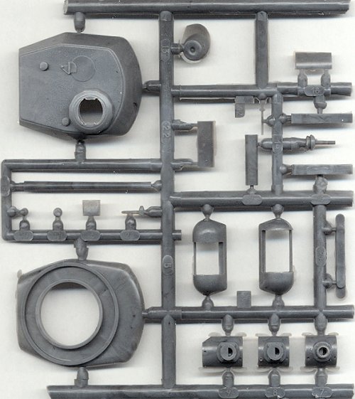 The turret is the same one that is included with the IS-1/2 series of models that PST marketed before these KV's. It includes options for both the 85mm (IS-1) and 122mm (IS-2) guns. But there are a few smaller turret details that are not on this sprue, so that PST had to include an additional sprue of parts from the IS kits, which gives the modeler a lot of spare parts for later projects.