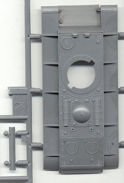 Even though based on the KV-1S, this kit comes with a completely different hull than the KV-1S kit. This is because there were some changes made to the turret mounting, in order to accomodate the larger diameter turret ring (as well as some smaller hull detail differences).