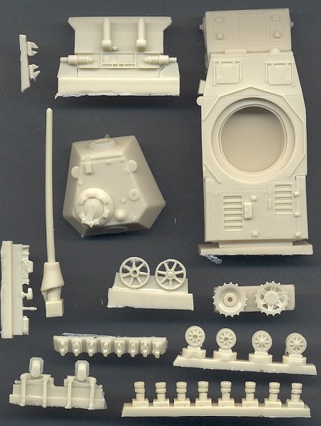 I'm not sure why I bought this kit, since I have absolutely NO interest in the late war German "projects" like many people have. But I was in the market for a new kit, and the shop was out of the Pz. IV Ausf. J, so I went with this one. The resin quality in this kit is the best I have seen. Absolutely no bubbles or air holes, and all the details are crisp and sharp. And no, the hull is not twisted, it just looks that way from the scanner (but the gun barrel definitely is warped).