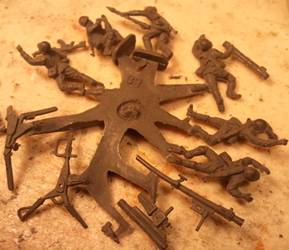 contains "2 pieces kit tank" and "11 figs and MG team/flag/posters".
