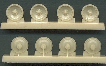 Contrary to what it says on Profikit's website, these wheels are appropriate only for early Panther Ds, and not the Panther A. They have the wheel rims added (which are missing on the Revell Panther D/A kit wheels), and the number of rim bolts has been correctly reduced to 16. Only the early Panther D had 16-bolt wheels. Late Ds and all later Panthers had 24 rim bolts (the Revell kit wheels have 20 bolts, which isn't correct for any Panther). So, keeping these facts in mind, these are very nicely molded wheels that will be very beneficial in building an early Panther D.