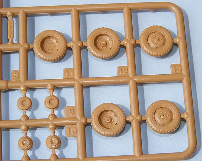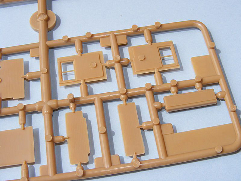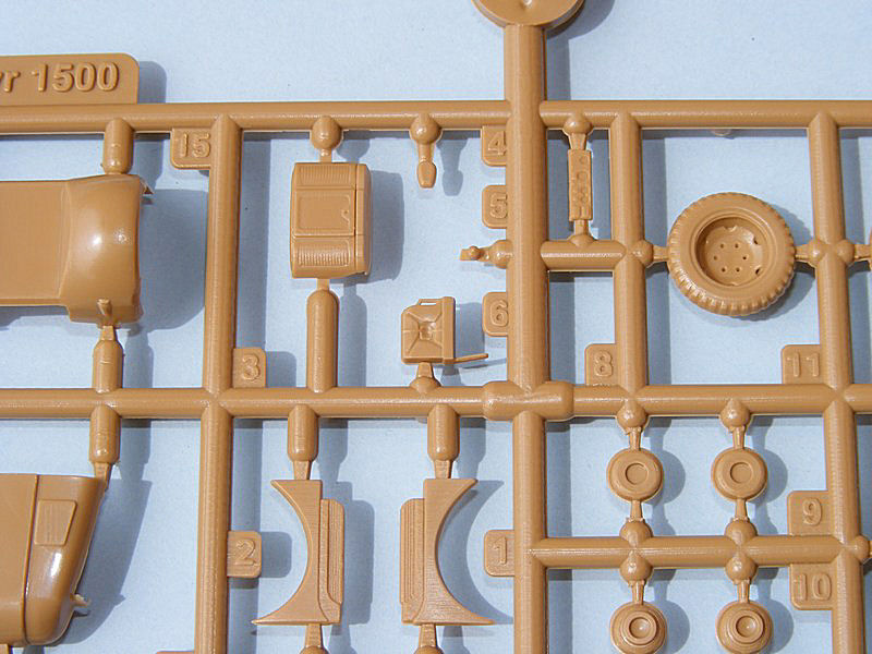 It's a short-run kit but a huge improvement on the MAC Steyr. Some pieces are very nicely-detailed, like the grills on the hood sides. Other pieces, like the headlights, are chunky and soft on details. All the pieces have very large attachment points and will probably require a razor saw and some careful clean-up. Some pieces have a small amount of flash but nothing too bad except for part of the exhaust, typical for this kind of kit. The molds must have been polished because many pieces have a mirror-like finish on them. Normally I don't prime my models, but I might use some Mr. Surfacer on this one to make sure the paint sticks. The interior of the cab is adequate, with a dashboard and steering wheel. The floor has some pedals molded in, but no gearshift. The doors are molded together with the side walls, similar to the Academy and MAC Opels, making it difficult to open the cab up. Probably pieces would have to be scratchbuilt, since the doors are so thick and have no interior detail. Another minor problem are the knockout pins on the doors. They are on the inside and will be easy to remove with an Xacto, but the exterior sides have dimples. The jerrycan mounted on the right front fender also has a large sinkhole that pretty much destroys the piece. Better to replace it and scratch a new mount. There are a few other sinkholes, but are so minor that a drop of Mr. Dissolved Putty with take care of them. The truck bed is scribed but doesn't have any wood grain detail which is usually too heavy in 1/72 anyways. |
