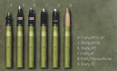 The shape of the shells matches that of the real shell well, while the projectiles seem to correspond to Armour Piercing Discarding Sabot, Solid Armour Piercing and HE/T Mk.I. The rounds have a diameter of 74 scale millimeters (corresponding well to the 76.2mm of the real round), while the shells have a length of 579 scale millimeters, while the real round is 583mm. Both measurements are well within my measurement tolerance zone.