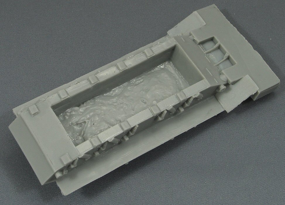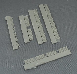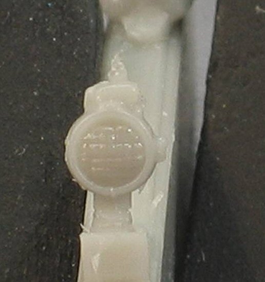 cardboard box. There is a small amount of flash on the smaller parts and some air bubbles can be seen. However, nothing dramatic. The level of detail in general is very sharp. Below some enlarged images as examples: a headlight and the spare track holder.. |