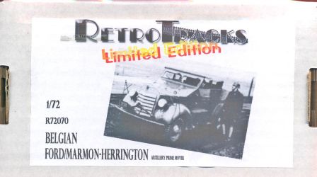 The Ford/Marmon-Herrington prime mover was used by the Belgian armed forces at the start of WW2 to tow the 47mm anti-tank gun. Many were pressed into service by the Germans after the fall of Belgium (as can be seen here). Some time ago, RetroTracks anounced its withdrawal from 1/72 AFV kits. Fortunately for us, they changed their minds and are back with some of the nicest resin kits on the market. The kit