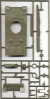 Here is the new sprue for the A5 kit, with the new turret. It also includes a new style of side armor skirts, a new gun, and additional armor pieces for the hull front. Notice the open hatches. Revell seems to have regressed some with their later releases by now molding all hatches closed.