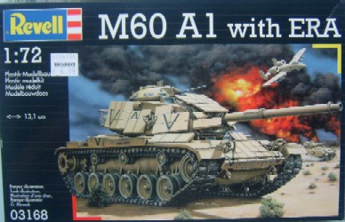 | Well we didn't have to wait too long for the next M60 release, this time it is the A1 version with the ERA armour array, this is the same as the base M60A3 kit with all the same mistakes, which are thankfully not that many and is concerned mainly with the tracks or rather the guide horns, they are in the wrong place ! depicted on the kit as being in the centre of the track instead of being part of the centre track connector as they should be. Still nothing that can not be fixed with a little work. The main sprues are the same as the M60A3 kit already reviewed. The extra sprue contains the parts for the A1 version and the ERA array, these include a new gun barrel without the thermal jacket of the A3, again this comes in 2 halves, which creates a seam that needs to be removed afterwards, the sprue also includes a new sight housing for the turret roof as well as a new housing for the stereoscopic sight mounted each side of the turret. The ERA array comes in blocks, but lacks any par of the mounting frame used, this is not so bad as for the most they are hidden anyway, but some of the turret ERA it would be visable from certain angles and the purists amongst you might want to add this detail. Markings are provided for 4 vehicles 2 US, 1 Italian and 1 Austrian References: