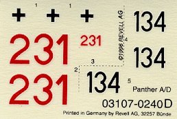 The decals for the Ausf. D/A kit includes markings for one of each version: an Ausf. D on the East Front in 1944, and an Ausf. A of Panzer Lehr Division, Saint Lo, 1944.
