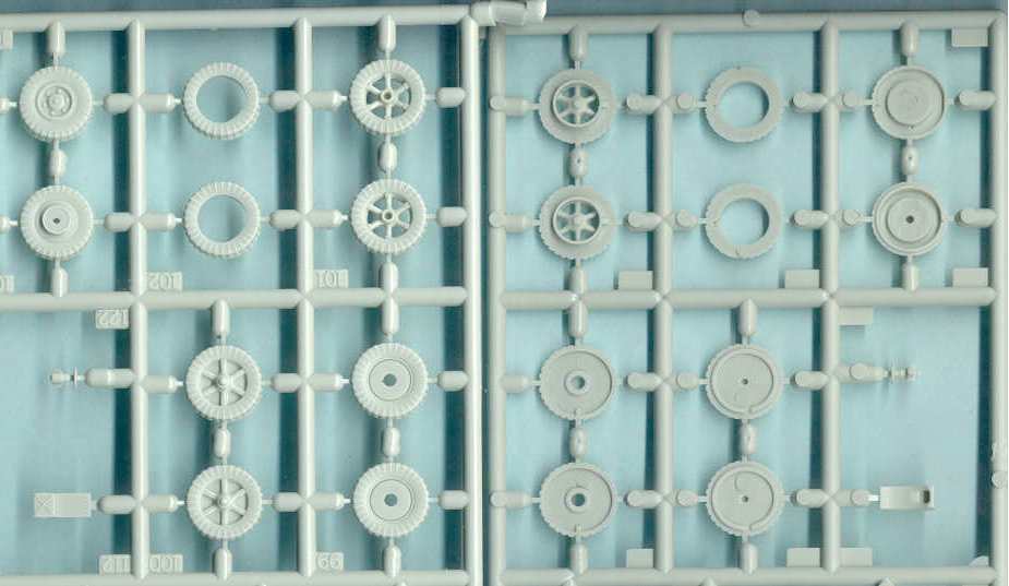 on the two Sprue-B’s. The wheels are molded in two parts which