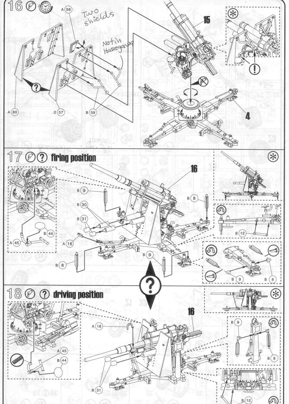 etc. Parts-53 and 54 are for a direct fire gun sight, such as for firing at tanks; something not included in the Hasegawa 88-mm Flak models.