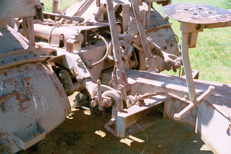 the gages, crew seats, and the elevation and traverse handwheels,