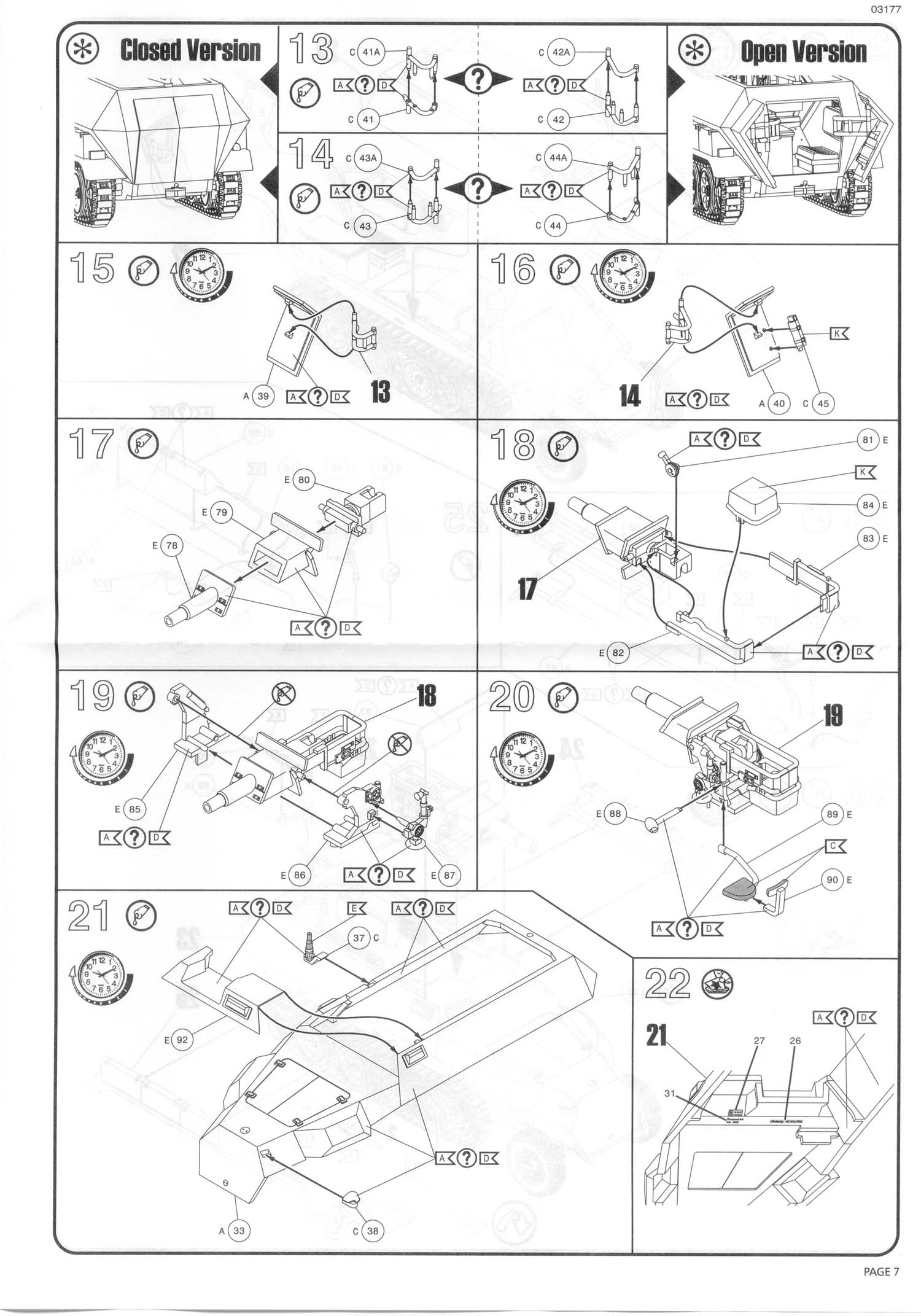 b) Sd.Kfz.251/9 In this kit the last sprue contains all that is needed to convert the vehicle into a /9: gun and mount, boxes that replace (part of) the benches, and a new roof plate. At first sight this assembly looks very nice. As you still get the original roof, you will still be able to build this kit as an ordinary /1 and use the remaining parts to convert an Ausf.D kit, so nothing is lost.