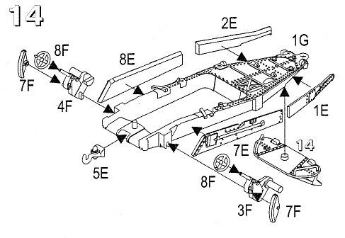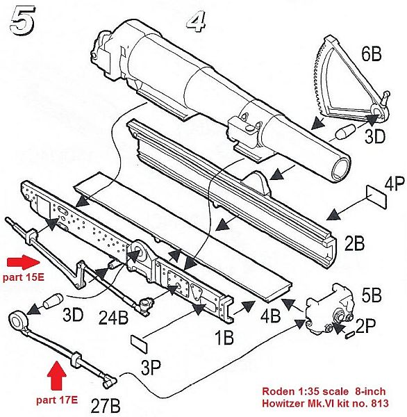 assembly. They were added afterwards using their 1/35 scale instructions as a guide (see diagram below right: red arrows & part numbers identify the corresponding