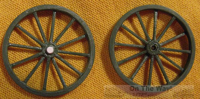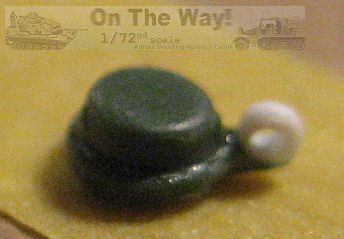 - The poor detail on the howitzer's hub cap tie down loops was redone. I also added a disc punched from plastic sheet to the back to