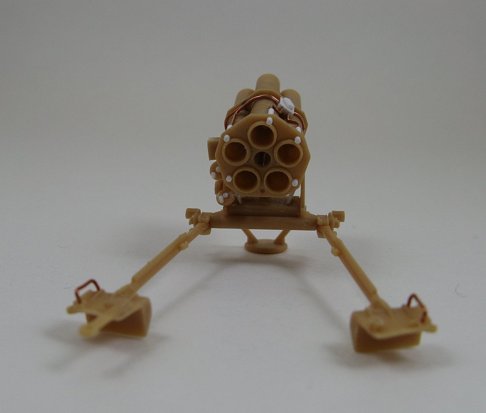 would need to cut the heads from the supplied rockets and trim them to fit into the front of the tubes and also add detail to the end of the tubes to simulate the rear end of the rockets.