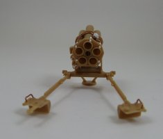The carriage, which is a two piece affair on the real launcher, is unfortunately molded as a single piece unit. Being much too difficult a fix it was left as is.
