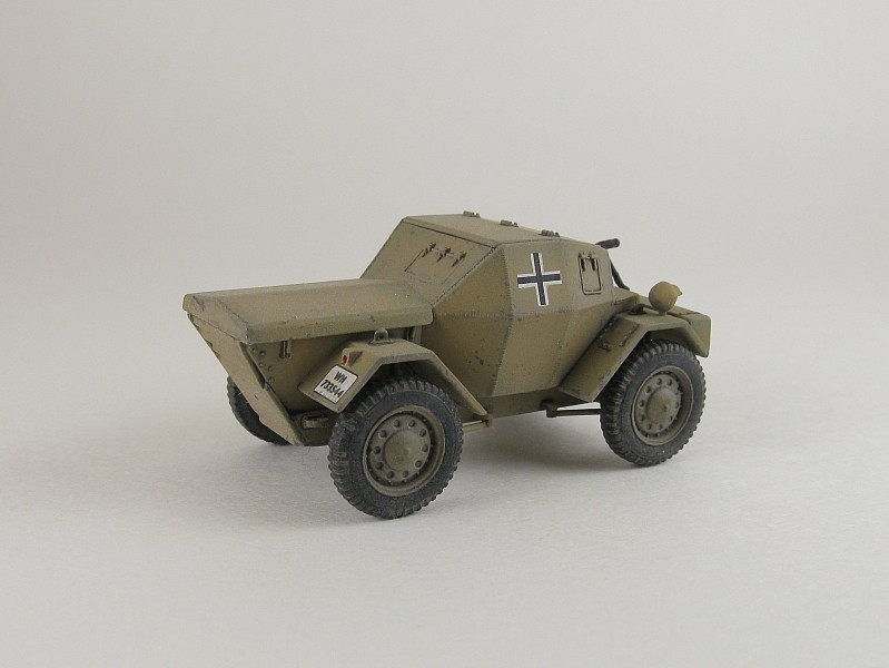 to do by simply deleting the support for the folding roof panels. And to make it German I needed an MG34 from my spare parts box and some WH plate decals.