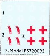 A small decal sheet contains some German crosses, which were indeed used in the ammunition carrier version, plus some red cross insignia and the stylized bear of the 4th Pz. Div. (does S-Model have any proof that the 4th Pz. Div. ever used turretless Pz.IA ambulances ?)