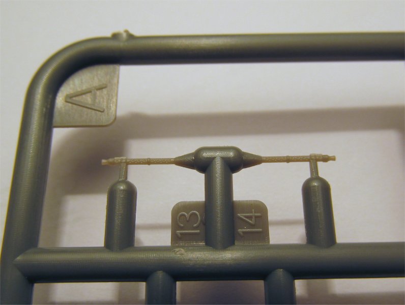 Another one contains the antenna guard to be mounted on the right anterior track guard, but, since it was tubular rather than flat, it should be scratchbuilt with copper wire.