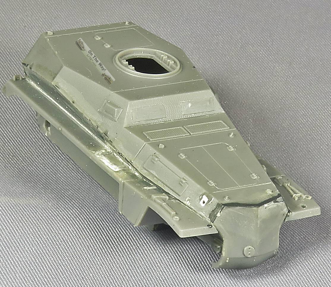 The kit fits very well, and one might argue that it fits too well, as the real specimen had an armored body where the upper hull hung slightly over the edges of the lower hull. As this would have been a pain to do, and as this feature is only really visible under certain lighting conditions, I let it be.
