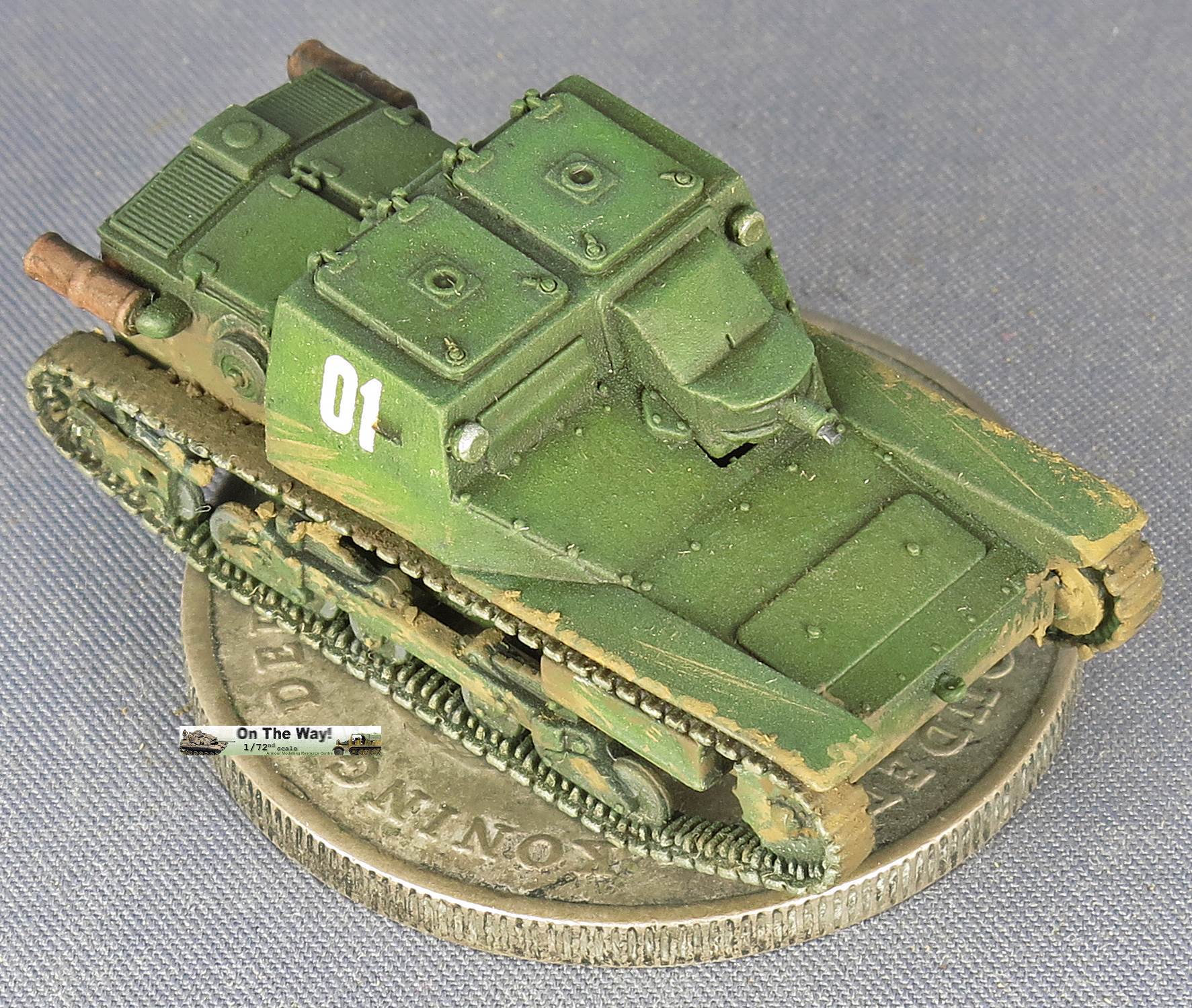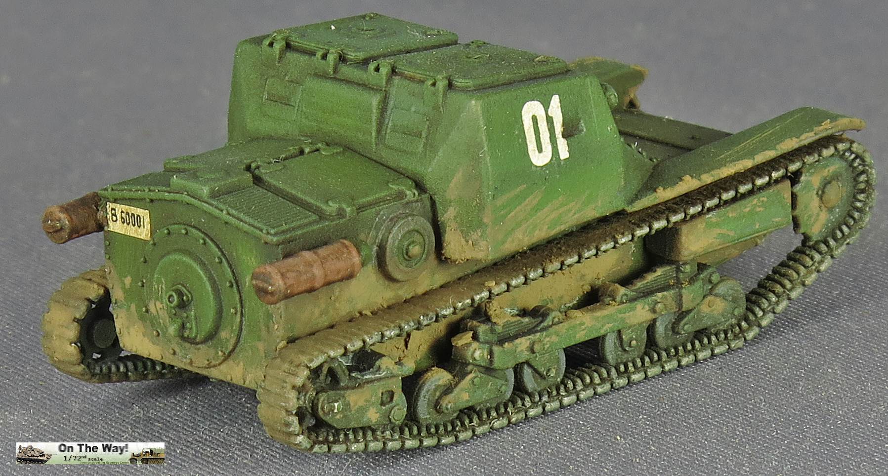 My second vehicle was completed as a Bulgarian vehicle, using the Bison decal set. This set gives you two color options and two marking options, and while it mentions that the vehicle carried a single Schwartzloze MG, it shows the suspension of a Series II vehicle, while the real vehicle was a Series I. This meant that I scratchbuilt two tiny suspension brackets and an MG. The twin gun mounts were filled in and a single central hole drilled out. I added a small towing eye to the nose plate. I chose the marking option "01". I noticed that the two decals for "01" were slightly different and had no indication which one had to go left and which one had to go right.