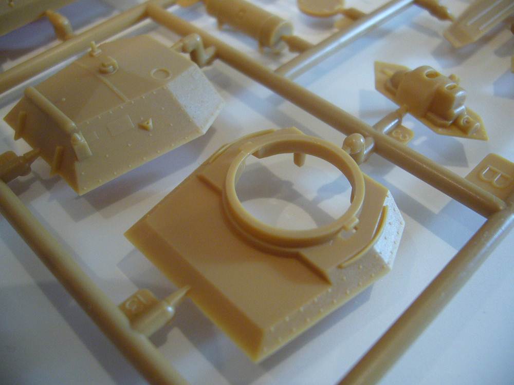 cm; every sprue contains 18 parts for the vehicle.