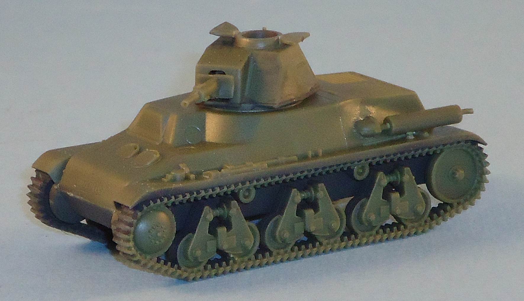 in a second. The suspension is quite nice, but the tracks are only mediocre. They also suffer from a mold seem that will require careful clean-up. The rest of the parts are sharply detailed, and even the "Hotchkiss" plate on the nose is present. After clean-up the tail-less kit goes together in about 20 minutes. For the kit with the tail, I removed the rods of the strengthening bars, keeping the ends where they attach to the tail. The reason was twofold: the rods are difficult to clean up due to the sprue attachment and they are slightly too long. Everything that needs to be done to further finish the model (like adding the missing items) might be interesting to our readers but, strictly speaking, has no further relevance for the review of this kit. I'll cover it regardless.