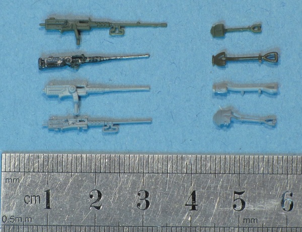ammo box), but the gun itself is probably about 15% too long. Meanwhile the spade is puny. Here's a shot comparing the S-Model 50-cal and shovel (top row) with