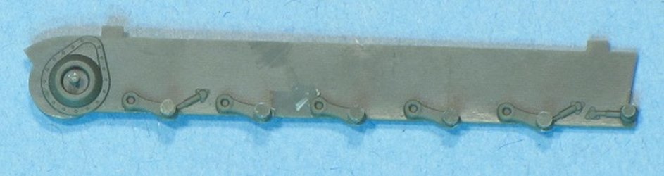 Like other S-Model kits, the track is moulded as a single piece, including the outer halves of the roadwheels, sprocket and idler. The detail on