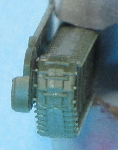 Below is the track face detail. You get a general sense of the track pads and the section around the track pins. Possibly this is OK for a wargaming model,