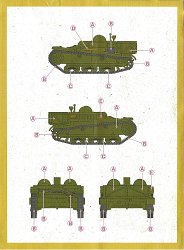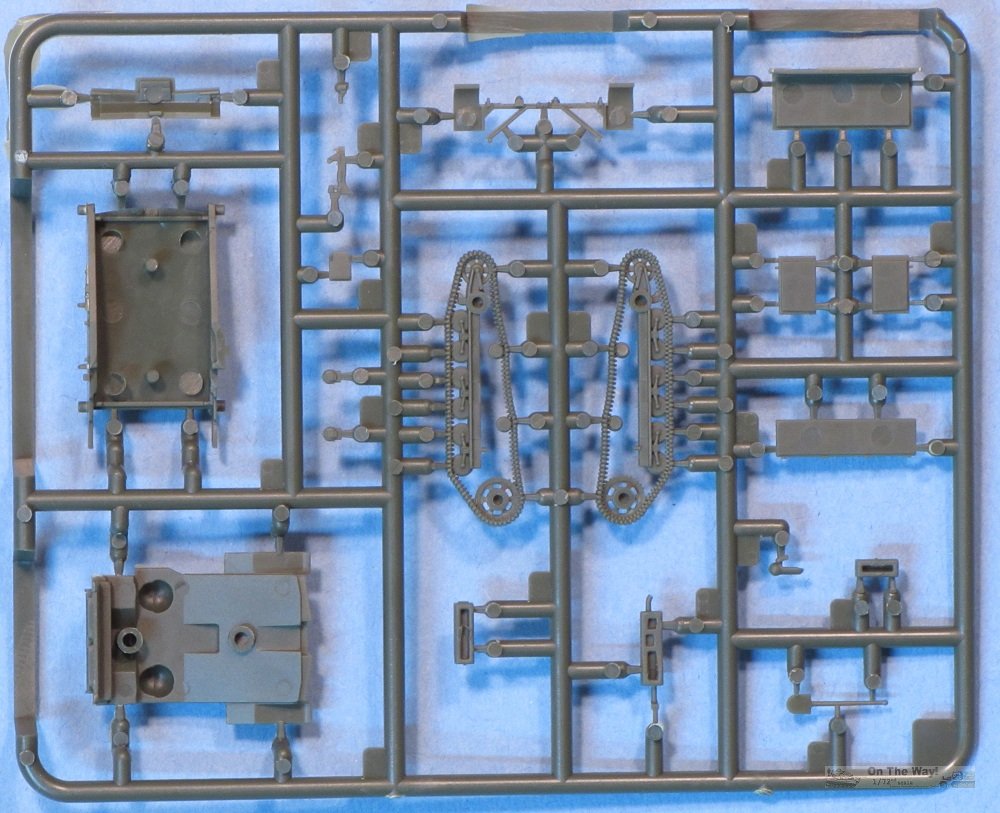 The upper hull and rear panel are moulded in a single part via slide moulds. Both of the crew domes (calottes) are moulded closed. The vision slits in the