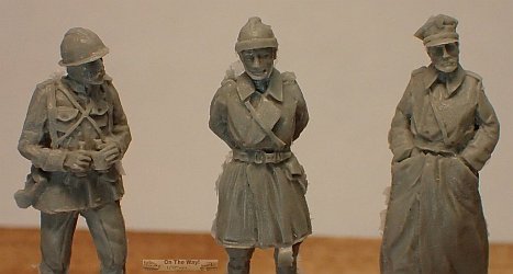 Each set has three figures, cast in light grey resin. There are some mould seams, flash and odd little disks of resin (part of their casting technique) that have to be