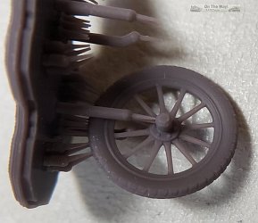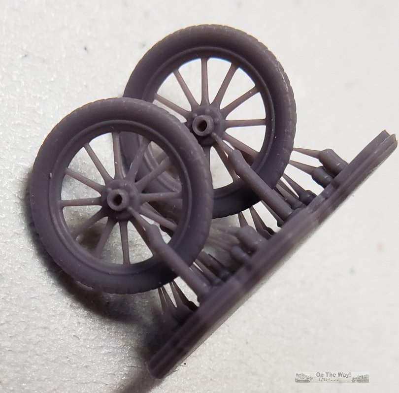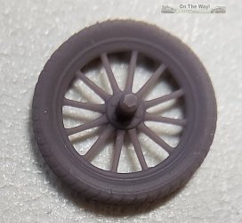 For those who, like myself, have purchased one of the RPM kits that are based on the ubiquitous Ford Model T, and have, like myself, wished for a better representation of the wheels contained in said kits, Syndicate Co. has come to our rescue. There is no disputing that the RPM wheels as they come in the box are not the best, especially with regards to the rather over thick spokes. The new 3D printed replacement wheels from Syndicate will definitely spruce up your build. The spokes are sublime, as is the hub detail and tire tread. Printing supports are super fine and should require little effort to remove. The little nubs left over will be extremely easy to sand off. You may need to enlarge the mounting hole on the backside of the hub, but that should be about all the extra effort you'll need to add these beauties to you model. According to [1], the early Model T came with a wheel diameter of 30in. In 1/72 that works out to 0.417in.