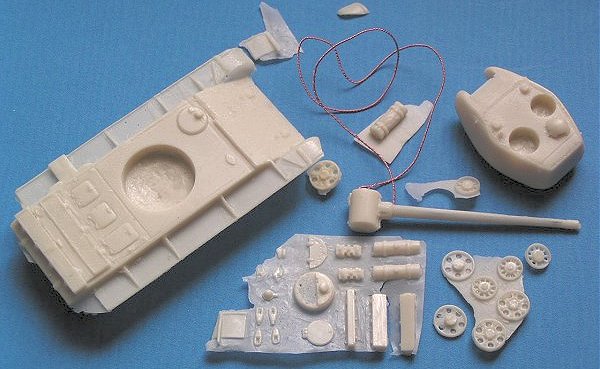 This is a kit from the Czech firm TP model. I have very mixed feeling for it. The turret and the hull I find OK. Not much airbubbles only a few small ones on the top of the fender where it will be easy to fill and sand. The surface is a bit course but that will give the model a "Soviet look". But I can't say that I'm too happy with the wheels and tracks.