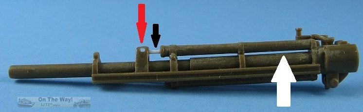 the black arrow points to the smaller diameter rod replacing the much too thick kit version. As a result of the changed gap the breech operating