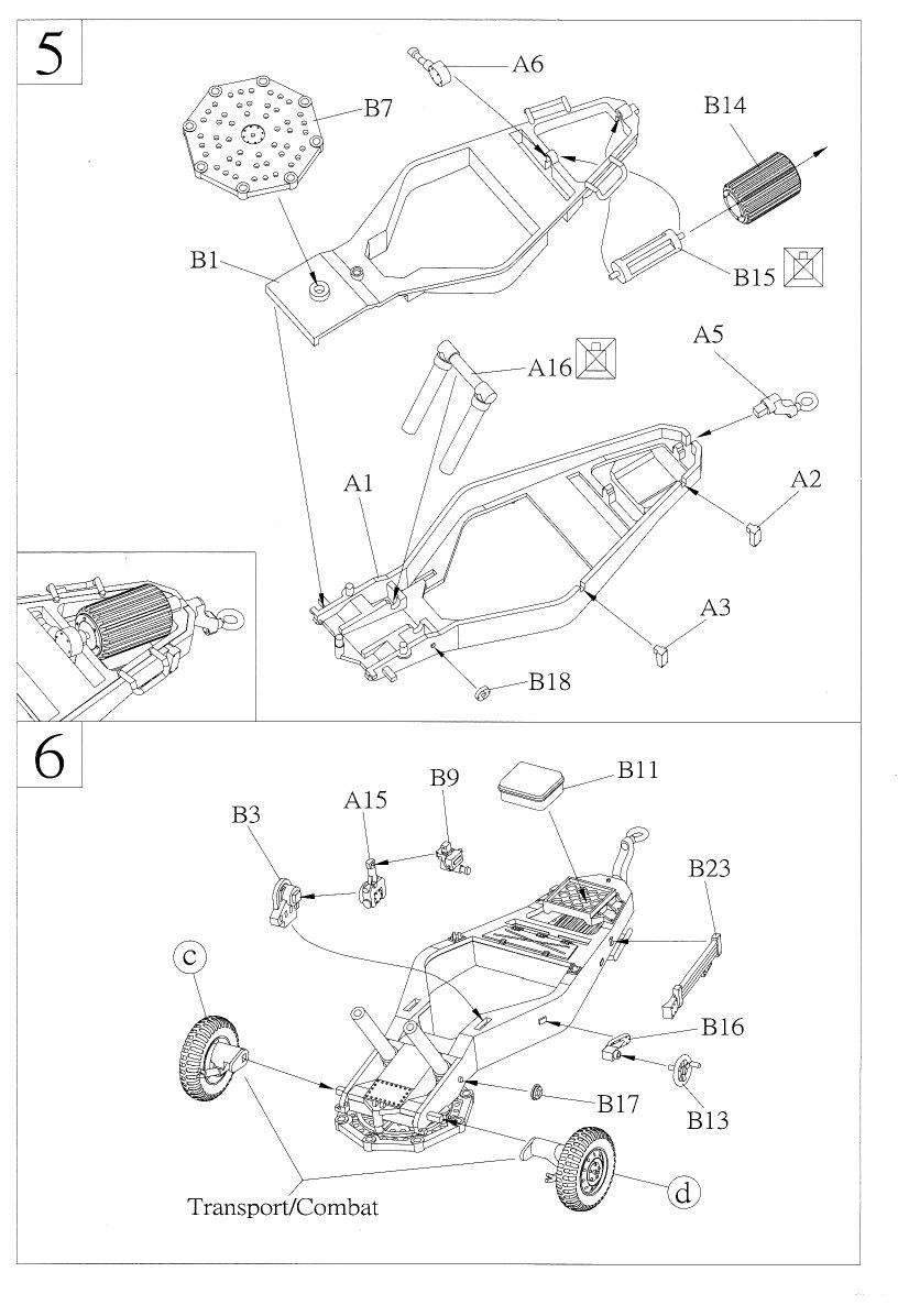 - Step 6 offers a choice of positioning the wheels for transport or for firing. The diagram is vague as to how this is done, so check your reference pictures