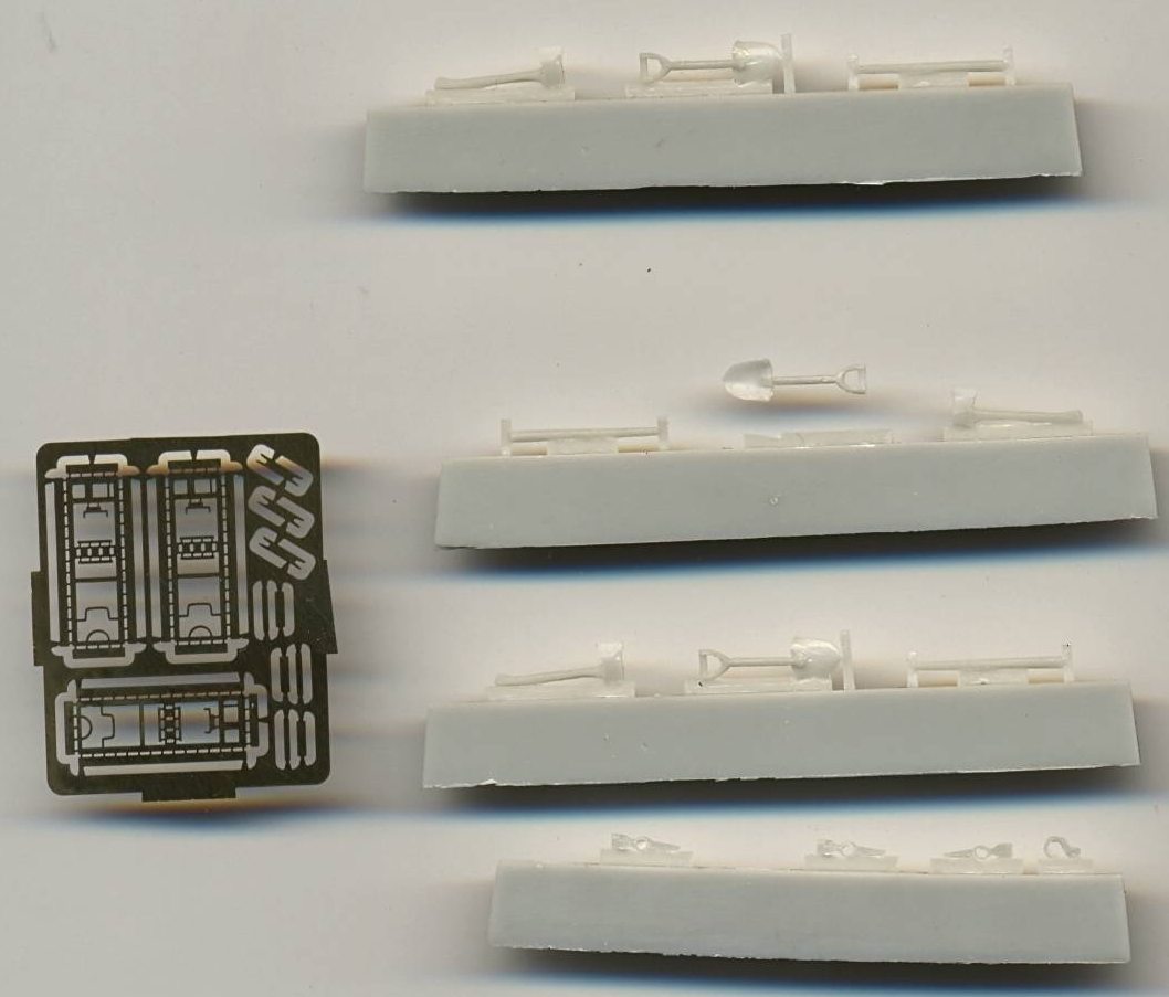 to enhance some US softskins (e.g. the GMC). Resin casting and PE quality is very nice, but I regret not having even the most simple manual to tell me how to bend the frames or mount the tools on them. However, I guess it cannot be unlike the PE parts in the GMC update set by T&T, a picture of which is shown below. A thorough research in the personal library and/or internet will have to elucidate any remaining mysteries.