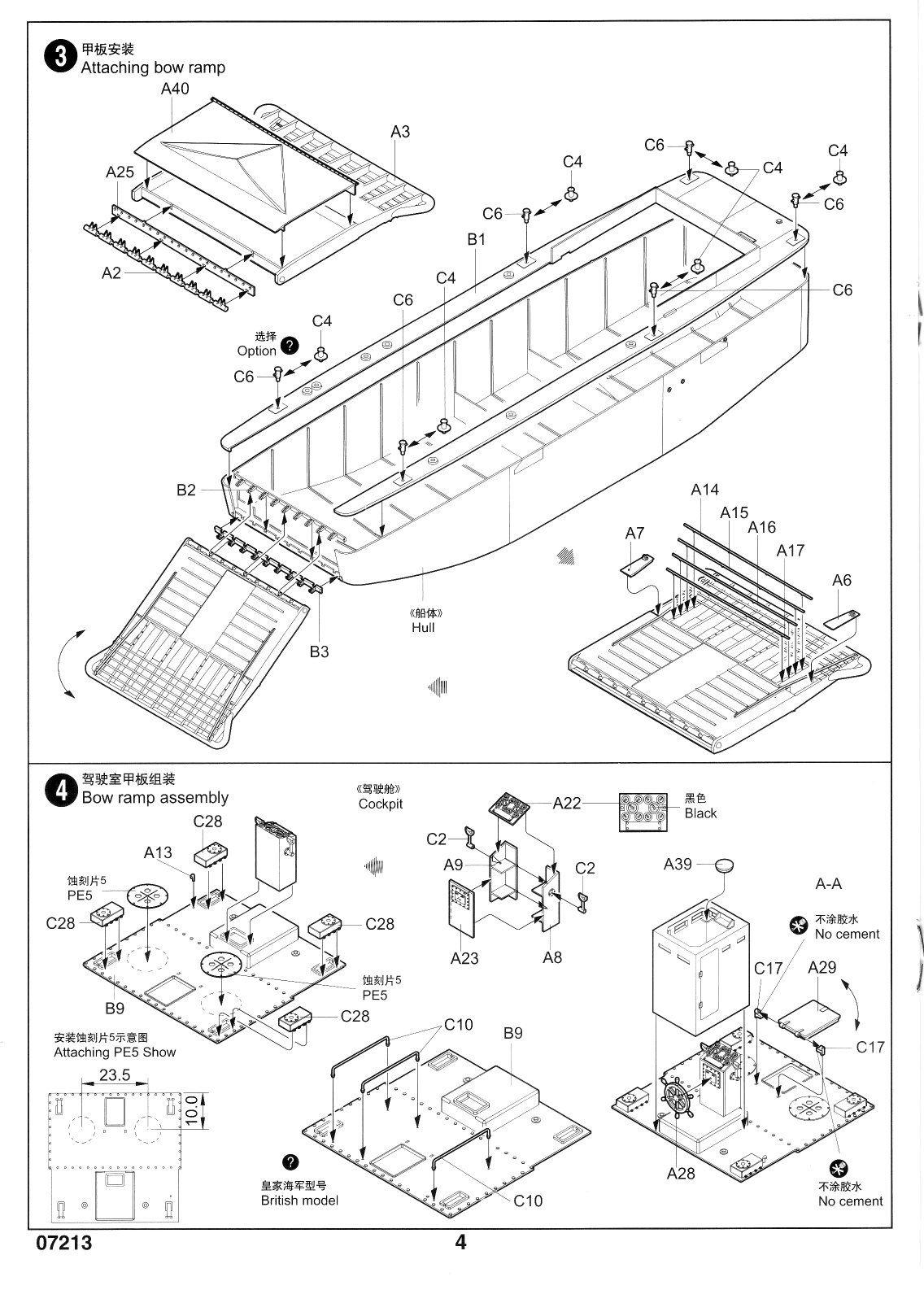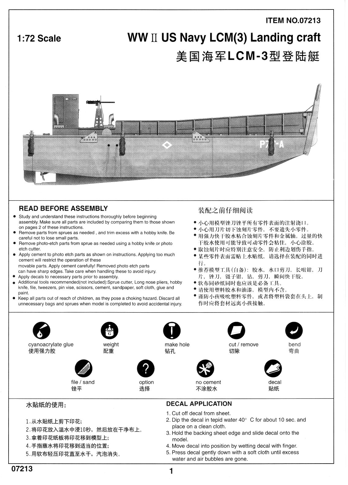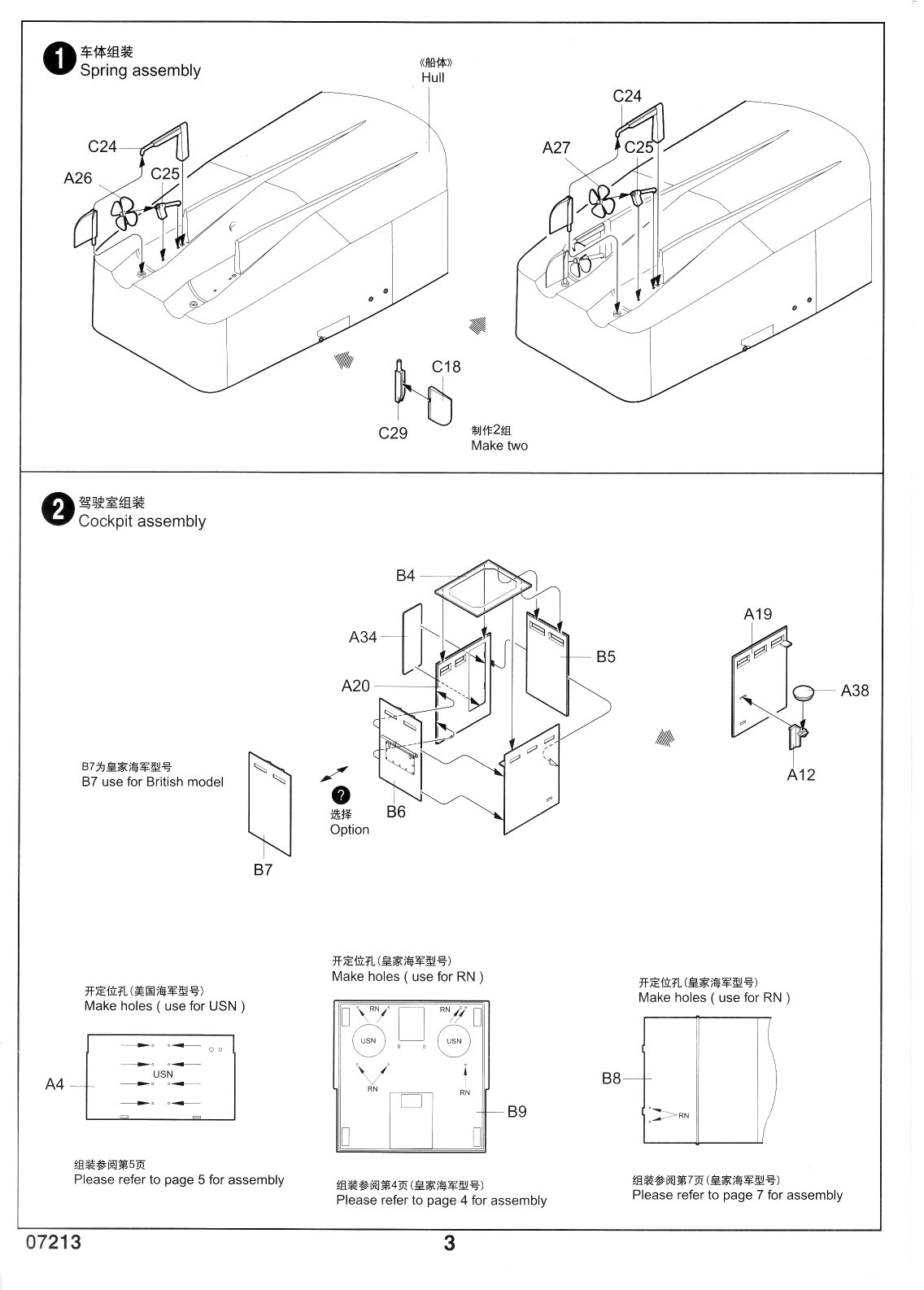 There is one oddity with the kit. The instructions gives alternate construction options for Royal Navy boats, but there are no decals for them nor painting