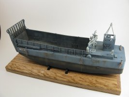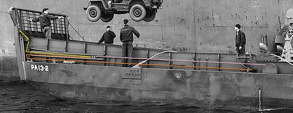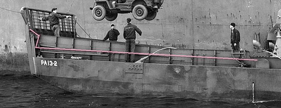 just forward of the steering position. Like its smaller sibling the LCVP, it was flat bottomed to allow it to be driven onto the shore and had a loading ramp in