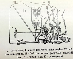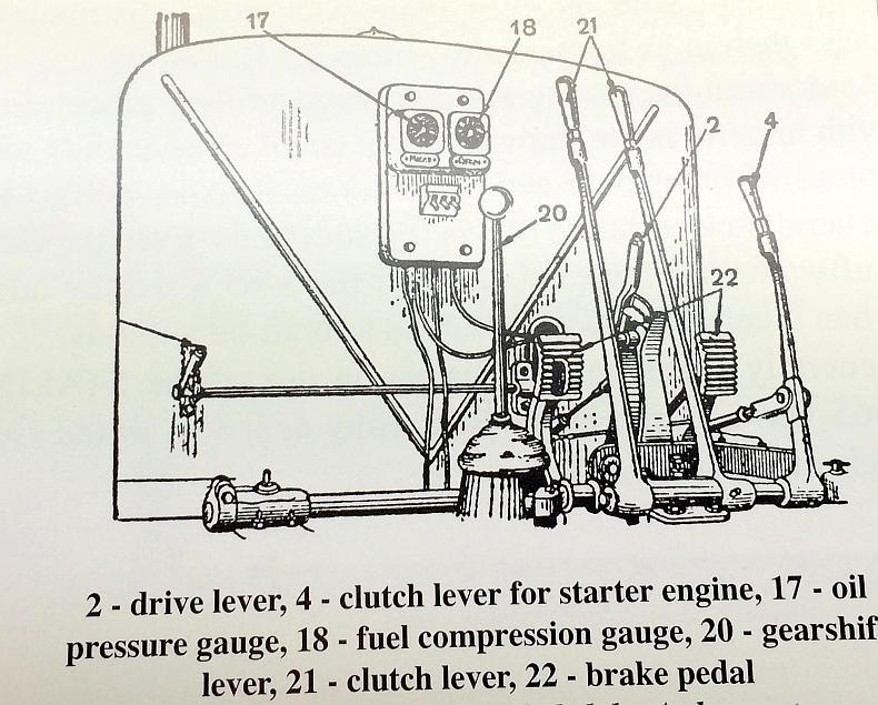 In the driver's area, all those hand and foot controls could be replaced. Again a pair of reference diagrams are provided above.
